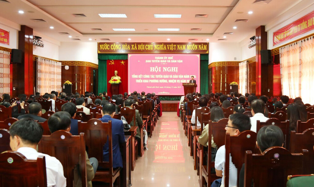 Ngày 18/12, Ban Tuyên giáo và Dân vận Thành ủy Huế tổ chức Hội nghị tổng kết công tác tuyên giáo và dân vận năm 2025, triển khai phương hướng nhiệm vụ năm 2026 và trao giải Cuộc thi chính luận bảo vệ nền tảng tư tưởng của Đảng thành phố Huế lần thứ II.