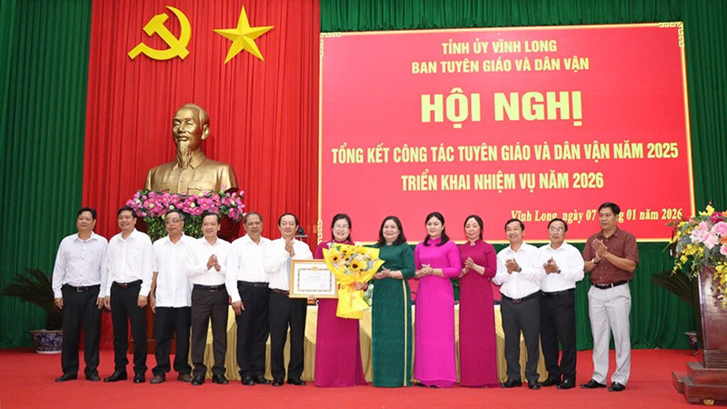 Ngày 07/01, Ban Tuyên giáo và Dân vận Tỉnh ủy Vĩnh Long tổ chức Hội nghị tổng kết công tác tuyên giáo và dân vận năm 2025, triển khai nhiệm vụ năm 2026 theo hình thức trực tiếp kết hợp trực tuyến. Các đồng chí: Huỳnh Thành Đạt, Ủy viên Trung ương Đảng, Phó Trưởng ban Tuyên giáo và Dân vận Trung ương; Hồ Thị Hoàng Yến, Phó Bí thư Thường trực Tỉnh ủy Vĩnh Long dự và chỉ đạo Hội nghị.