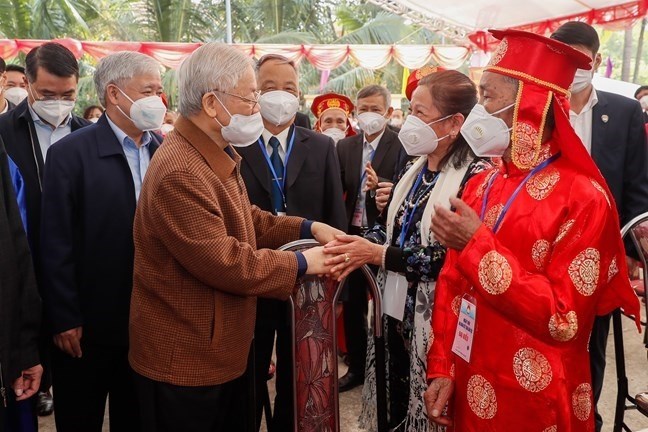 Báo cáo chính trị tại Đại hội XIII của Đảng đã nêu 5 quan điểm chỉ đạo; trong đó, quan điểm thứ hai về động lực phát triển đất nước là: “Khơi dậy mạnh mẽ tinh thần yêu nước, ý chí tự cường dân tộc, sức mạnh đại đoàn kết toàn dân tộc và khát vọng phát triển đất nước phồn vinh, hạnh phúc; phát huy dân chủ xã hội chủ nghĩa, sức mạnh tổng hợp của cả hệ thống chính trị và của nền văn hóa, con người Việt Nam, bồi dưỡng sức dân, nâng cao chất lượng nguồn nhân lực, có cơ chế đột phá để thu hút, trọng dụng nhân tài, ứng dụng mạnh mẽ khoa học và công nghệ, nhất là những thành tựu của cuộc Cách mạng công nghiệp lần thứ tư, thúc đẩy đổi mới sáng tạo, tạo động lực mới cho phát triển nhanh và bền vững đất nước”[11]. Trong quan điểm chỉ đạo thứ năm về các nhân tố quyết định thành công của sự nghiệp cách mạng nước ta có nhấn mạnh: Cán bộ, đảng viên phải gắn bó mật thiết với Nhân dân.