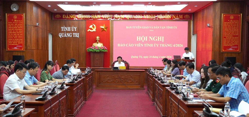 Các cấp ủy đảng, chính quyền đẩy mạnh tuyên truyền Nghị quyết Đại hội XIV của Đảng và các nghị quyết, kết luận của Trung ương, nhất là những quan điểm mới về phát triển kinh tế-xã hội. Đây là yêu cầu được lãnh đạo Ban Tuyên giáo và Dân vận Tỉnh ủy Quảng Trị nhấn mạnh tại Hội nghị Báo cáo viên Tỉnh ủy tháng 4/2026 diễn ra ngày 24/4.