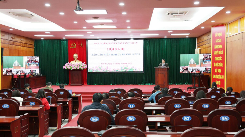 Ngày 27/11, Ban Tuyên giáo và Dân vận Tỉnh ủy Sơn La tổ chức Hội nghị Báo cáo viên Tỉnh ủy tháng 11/2025. Hội nghị được kết nối trực tuyến đến điểm cầu 75 xã, phường trên địa bàn tỉnh.