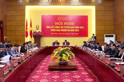 Tại Hội nghị giao ban công tác tư tưởng, báo chí tháng 12/2023 do Ban Tuyên giáo Tỉnh ủy Bắc Ninh tổ chức ngày 20/12, lãnh đạo Ban Tuyên giáo Tỉnh ủy đề nghị các cơ quan báo chí, Ban Tuyên giáo các địa phương, đơn vị chủ động nắm bắt tình hình tư tưởng, dư luận trong cán bộ, đảng viên và nhân dân trên các lĩnh vực. -