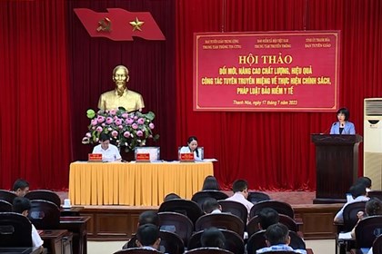 17/07/2023 15:12' Ngày 17/7, Trung tâm Thông tin công tác tuyên giáo, Ban Tuyên giáo Trung ương phối hợp Ban Tuyên giáo Tỉnh ủy Thanh Hóa, Trung tâm Truyền thông, Bảo hiểm xã hội Việt Nam và Bảo hiểm xã hội tỉnh Thanh Hóa tổ chức Hội thảo “Đổi mới, nâng cao chất lượng, hiệu quả công tác tuyên truyền miệng về thực hiện chính sách, pháp luật Bảo hiểm Y tế”.
