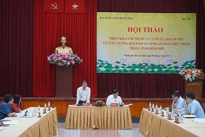 Ngày 05/7, tại Thành phố Hồ Chí Minh, Ban Tuyên giáo Trung ương phối hợp với Bộ Y tế tổ chức Hội thảo "Giải pháp triển khai hiệu quả Chỉ thị số 17-CT/TW của Ban Bí thư về tăng cường bảo đảm an ninh, an toàn thực phẩm trong tình hình mới", khu vực phía Nam. -