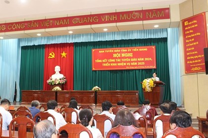 Tăng cường tham mưu cấp ủy đảng trong lãnh đạo, chỉ đạo công tác giáo dục tư tưởng chính trị, đạo đức, lối sống cho cán bộ, đảng viên; chủ động xây dựng, củng cố thế trận thông tin - truyền thông kịp thời, hiệu quả… là những nhiệm vụ trọng tâm năm 2025 được ngành Tuyên giáo tỉnh Tiền Giang xác định tại Hội nghị tổng kết công tác tuyên giáo năm 2024, triển khai nhiệm vụ năm 2025 vào sáng 19/12. -