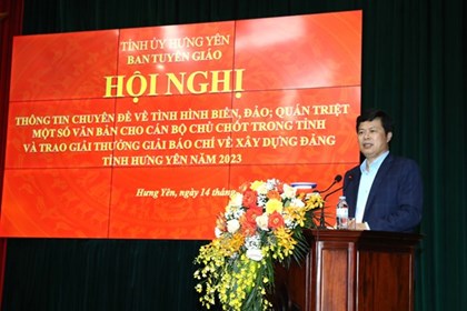 Ngày 14/12, Ban Tuyên giáo Tỉnh ủy Hưng Yên tổ chức Hội nghị thông tin chuyên đề về tình hình biển, đảo và quán triệt một số văn bản cho cán bộ chủ chốt trong tỉnh. -