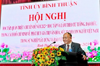 Quán triệt tư tưởng, đạo đức, phong cách Hồ Chí Minh về phát huy giá trị văn hóa, sức mạnh con người Việt Nam trong sự nghiệp xây dựng và bảo vệ Tổ quốc, tỉnh Bình Thuận sẽ tiếp tục phát huy truyền thống lịch sử, văn hóa, cách mạng của quê hương, đất nước, tiếp nhận thời cơ mới, khơi dậy khát vọng, ý chí vươn lên, đổi mới sáng tạo… -
