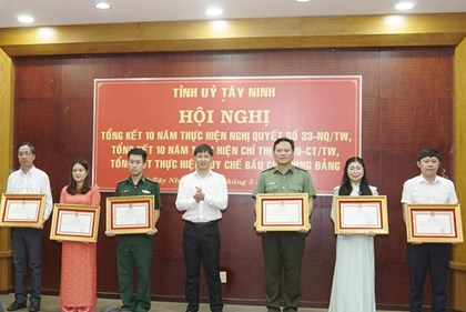 Ngày 20/5, Ban Thường vụ Tỉnh uỷ Tây Ninh tổ chức Hội nghị tổng kết 10 năm thực hiện Nghị quyết số 33-NQ/TW, ngày 9/6/2014 về “Xây dựng và phát triển văn hoá, con người Việt Nam đáp ứng yêu cầu phát triển bền vững đất nước”. Hội nghị được kết nối đến 46 điểm cầu trong toàn tỉnh, với 1.400 đại biểu tham dự. -