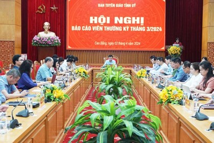 Ngày 2/4, Ban Tuyên giáo Tỉnh ủy Cao Bằng tổ chức Hội nghị Báo cáo viên thường kỳ tháng 3/2024 theo hình thức trực tiếp và trực tuyến tới 219 điểm cầu các huyện, thành ủy, đảng ủy trực thuộc Tỉnh ủy và các xã, phường, thị trấn, với trên 5.900 đại biểu tham dự. -