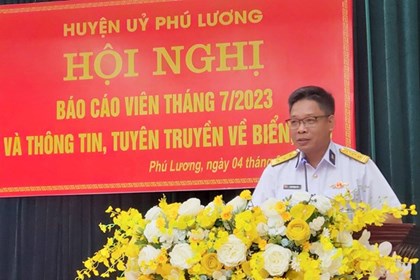 Trong hai ngày 04 và 05/7, Cục Kỹ thuật Hải quân phối hợp với Ban Tuyên giáo Tỉnh ủy Thái Nguyên tổ chức Hội nghị cung cấp thông tin chuyên đề về biển, đảo cho đại biểu là cán bộ chủ chốt cấp huyện, báo cáo viên, cộng tác viên dư luận xã hội cấp huyện tại 02 huyện Võ Nhai và Phú Lương, tỉnh Thái Nguyên. -