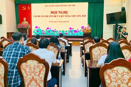 Ngày 11/8, Ban Tuyên giáo Thành ủy Hà Nội tổ chức Hội nghị tập huấn chuyên đề và kỹ năng viết tin, bài cho hơn 100 đại biểu là lãnh đạo, chuyên viên Ban Tuyên giáo quận, huyện, thị ủy, Đảng bộ trực thuộc thành phố; đại diện các sở, ban, ngành và cộng tác viên Trang thông tin điện tử Đảng bộ thành phố. -
