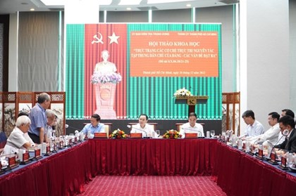 26/12/2022 21:48' Đây là một trong những vấn đề được nêu ra tại Hội thảo khoa hoc "Thực trạng các cơ chế thực thi nguyên tắc tập trung dân chủ của Đảng - các vấn đề đặt ra" do Ủy ban Kiểm tra Trung ương và Thành ủy Thành phố Hồ Chí Minh tổ chức chiều 26/12.