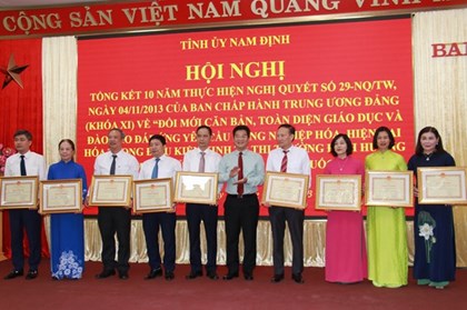 Ngày 29/11, tại Hà Nội, Ban Tuyên giáo Trung ương phối hợp với Bộ Giáo dục và Đào tạo tổ chức Hội nghị Báo cáo Đề án tổng kết 10 năm thực hiện Nghị quyết số 29-NQ/TW, ngày 4/11/2013 của Ban Chấp hành Trung ương Đảng khóa XI “Về đổi mới căn bản, toàn diện giáo dục và đào tạo, đáp ứng yêu cầu công nghiệp hóa, hiện đại hóa trong điều kiện kinh tế thị trường định hướng xã hội chủ nghĩa và hội nhập quốc tế”. -