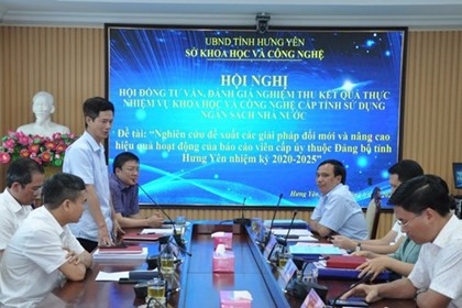 Tin hoạt độngĐổi mới và nâng cao hiệu quả hoạt động của báo cáo viên cấp ủy thuộc Đảng bộ tỉnh Hưng YênNhằm đổi mới, nâng cao hiệu quả hoạt động của đội ngũ báo cáo viên cấp ủy thuộc Đảng bộ tỉnh Hưng Yên, hiện nay, Ban Tuyên giáo Tỉnh ủy thực hiện Đề tài khoa học và công nghệ cấp tỉnh “Nghiên cứu đề xuất các giải pháp đổi mới và nâng cao hiệu quả hoạt động của báo cáo viên cấp ủy thuộc Đảng bộ tỉnh Hưng Yên nhiệm kỳ 2020-2025”. Ngày 15/6, Đề tài đã được nghiệm thu và đạt loại xuất sắc.