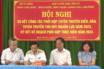 Năm 2023, công tác phối hợp tuyên truyền biển, đảo giữa Vùng 4 Hải quân và Ban Tuyên giáo 4 tỉnh Bình Phước, Ninh Thuận, Lâm Đồng, Khánh Hoà đã được quan tâm lãnh đạo, chỉ đạo bám sát tình hình nhiệm vụ, triển khai thực hiện chủ động, linh hoạt theo đúng kế hoạch đã đạt những kết quả tích cực. -