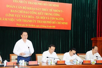 16/10/2023 16:05' Thành phố Hồ Chí Minh với vai trò đầu tàu về kinh tế, xã hội của cả nước cần nghiên cứu sâu các chính sách văn hóa, xã hội, đào tạo con người, từ đó có những bài học, kinh nghiệm, giải pháp mới áp dụng cho cả nước.