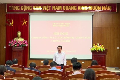 Ngày 14/10, Ban Tuyên giáo Tỉnh uỷ Bắc Ninh tổ chức Hội nghị giao ban công tác lý luận chính trị- lịch sử Đảng 9 tháng năm 2022; Giao ban công tác Khoa giáo - Văn hoá quý III, triển khai nhiệm vụ công tác quý IV năm 2022. -