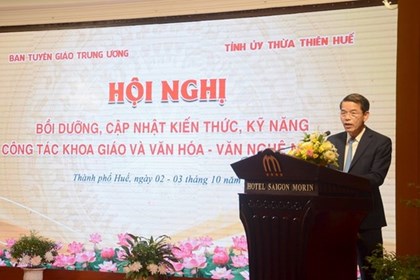 Ngày 02/10, tại thành phố Huế, Ban Tuyên giáo Trung ương phối hợp với Tỉnh ủy Thừa Thiên - Huế tổ chức Hội nghị bồi dưỡng, cập nhật kiến thức, kỹ năng công tác khoa giáo và văn hóa - nghệ thuật năm 2024 cho cán bộ tuyên giáo trên toàn quốc. -
