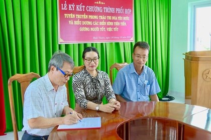 Ban Tuyên giáo Tỉnh ủy Bình Thuận, Sở Thông tin & Truyền thông và Ban Thi đua – Khen thưởng tỉnh vừa ký kết chương trình phối hợp tuyên truyền phong trào thi đua yêu nước và biểu dương các điển hình tiên tiến, gương người tốt, việc tốt.