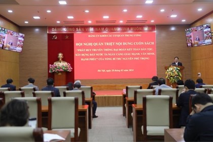 Hội nghị giúp các cấp ủy, tổ chức đảng quán triệt, nghiên cứu kỹ các nội dung, tư tưởng của đồng chí Tổng Bí thư Nguyễn Phú Trọng về đại đoàn kết toàn dân tộc và đường lối đối ngoại của Việt Nam, từ đó vận dụng vào công tác xây dựng đảng và lãnh đạo thực hiện nhiệm vụ chính trị của từng đảng bộ và cơ quan, đơn vị...