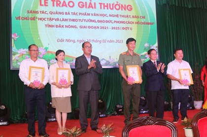 Ngày 10/2, Tỉnh ủy Đắk Nông tổ chức trao Giải thưởng sáng tác, quảng bá các tác phẩm văn học, nghệ thuật và báo chí về chủ đề học tập và làm theo tư tưởng, đạo đức, phong cách Hồ Chí Minh tỉnh Đắk Nông, giai đoạn 2021-2025 (đợt 1). -