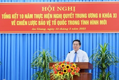 Ngày 13/3, Ban Thường vụ Tỉnh ủy An Giang tổ chức Hội nghị tổng kết 10 năm thực hiện Nghị quyết Trung ương 8 khóa XI về “Chiến lược bảo vệ Tổ quốc trong tình hình mới” trên địa bàn tỉnh An Giang.