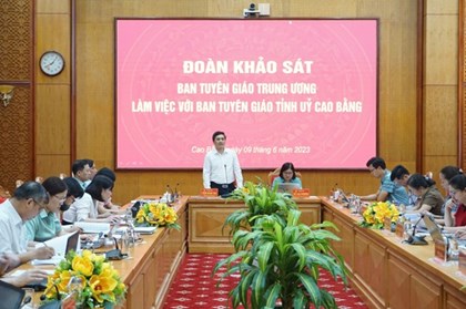 Ngày 09/6, Đoàn khảo sát Ban Tuyên giáo Trung ương làm việc với Ban Tuyên giáo Tỉnh ủy Cao Bằng về việc triển khai thực hiện Quyết định số 973-QĐ/BTGTW và công tác biên soạn, phát hành, sử dụng Bản tin Thông tin sinh hoạt chi bộ. -