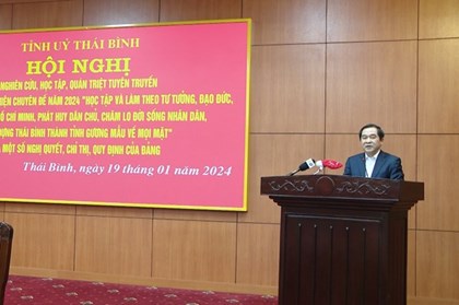 Ngày 04/01, Tỉnh ủy Thái Bình tổ chức Hội nghị sơ kết 5 năm thực hiện Đề án số 07-ĐA/TU ngày 07/12/2018 của Ban Thường vụ Tỉnh ủy về “Tiếp tục đổi mới nội dung, phương thức, nâng cao hiệu quả công tác tư tưởng của Đảng bộ tỉnh trước yêu cầu mới”; tổng kết công tác tuyên giáo năm 2023, triển khai phương hướng, nhiệm vụ năm 2024. -