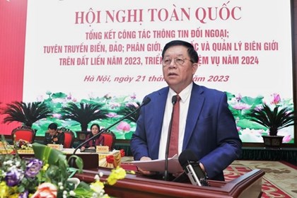 22/12/2023 08:11' Đồng chí Nguyễn Trọng Nghĩa, Bí thư Trung ương Đảng, Trưởng Ban Tuyên giáo Trung ương, Trưởng Ban Chỉ đạo Công tác thông tin đối ngoại đề nghị lan tỏa và tranh thủ được những kết quả đối ngoại quan trọng đã đạt được, biến những thành quả đối ngoại thành kết quả phát triển kinh tế - xã hội; bảo vệ độc lập, chủ quyền, toàn vẹn lãnh thổ.