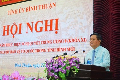 Trong thời gian tới, Bình Thuận với vị trí địa lý chiến lược rất quan trọng về quốc phòng an ninh, vì vậy cần phải làm tốt hơn nữa công tác dự báo đánh giá tình hình trên tất cả các mặt, các lĩnh vực, phải kết hợp chặt chẽ, hài hoà giữa đảm bảo quốc phòng, an ninh với phát triển kinh tế-xã hội. -