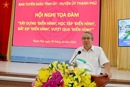 Ngày 20/10, Ban Tuyên giáo Tỉnh ủy Bến Tre phối hợp với Ban Thường vụ Huyện ủy Thạnh Phú tổ chức Hội nghị tọa đàm với chủ đề: Xây dựng "điển hình", học tập "điển hình", bắt kịp "điển hình" và vượt qua "điển hình" trong thực hiện Chỉ thị số 01-CT/TU của Ban Thường vụ Tỉnh ủy về phát động phong trào thi đua “Đồng khởi mới” giai đoạn 2020 - 2025, tầm nhìn 2030. -