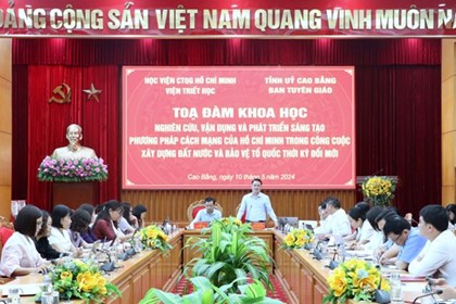 Ngày 10/5, Ban Tuyên giáo Tỉnh uỷ Cao Bằng và Viện Triết học, Học viện Chính trị quốc gia Hồ Chí Minh phối hợp tổ chức Tọa đàm khoa học “Nghiên cứu, vận dụng và phát triển sáng tạo phương pháp cách mạng Hồ Chí Minh trong công cuộc xây dựng đất nước và bảo vệ Tổ quốc thời kỳ đổi mới". -