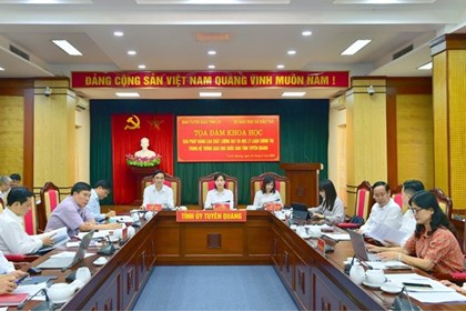 Triển khai Kế hoạch số 429-KH/BTGTW ngày 29/02/2024 của Ban Tuyên giáo Trung ương về tổng kết 10 năm thực hiện Kết luận số 94-KL/TW ngày 28/3/2014 của Ban Bí thư về “Tiếp tục đổi mới việc học tập lý luận chính trị trong hệ thống giáo dục quốc dân”, ngày 24/5, Ban Tuyên giáo Tỉnh uỷ Tuyên Quang tổ chức Toạ đàm khoa học “Giải pháp nâng cao chất lượng việc dạy và học lý luận chính trị trong hệ thống giáo dục quốc dân tỉnh Tuyên Quang”. -