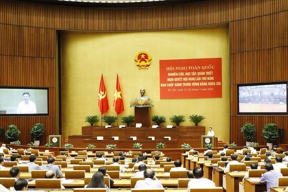 Ngày 22/7, Hội nghị toàn quốc nghiên cứu, học tập, quán triệt Nghị quyết Hội nghị lần thứ 5, Ban Chấp hành Trung ương Đảng khóa XIII tiếp tục ngày làm việc thứ hai và bế mạc. -