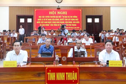 Nghị quyết và đời sốngNinh Thuận: Nâng cao nhận thức của cán bộ, đảng viên và nhân dân về lịch sử vẻ vang của Đảng Cộng sản Việt NamNgày 09/5, Ban Thường vụ Tỉnh ủy Ninh Thuận tổ chức Hội nghị học tập, tuyên truyền bài viết “Tự hào và tin tưởng dưới lá cờ vẻ vang của Đảng, quyết tâm xây dựng một nước Việt Nam ngày càng giàu mạnh, văn minh, văn hiến và anh hùng” của đồng chí Tổng Bí thư Nguyễn Phú Trọng. Hội nghị được kết nối trực tuyến đến 75 điểm cầu các huyện, thành ủy, đảng ủy trực thuộc Tỉnh ủy và cấp ủy cơ sở với 2.336 đảng viên tham gia.