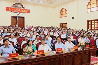 Tin hoạt độngNinh Bình: Nghiên cứu, học tập nội dung các tác phẩm của đồng chí Tổng Bí thư Nguyễn Phú TrọngSáng 12/6, Ban Thường vụ Tỉnh ủy Ninh Bình tổ chức Hội nghị nghiên cứu, học tập nội dung các tác phẩm: "Tự hào và tin tưởng dưới lá cờ vẻ vang của Đảng, quyết tâm xây dựng một nước Việt Nam ngày càng giàu mạnh, văn minh, văn hiến và anh hùng"; "Xây dựng và phát triển nền đối ngoại, ngoại giao Việt Nam toàn diện, hiện đại, mang đậm bản sắc "cây tre Việt Nam"" của đồng chí Tổng Bí thư Nguyễn Phú Trọng.