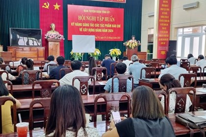 Tin hoạt độngQuảng Trị: Tập huấn kỹ năng sáng tác các tác phẩm báo chí về công tác xây dựng ĐảngTrong hai ngày 14 và 15/6, Ban Tuyên giáo Tỉnh ủy Quảng Trị tổ chức Hội nghị tập huấn kỹ năng sáng tác các tác phẩm báo chí về xây dựng Đảng năm 2024 cho hơn 40 cán bộ, phóng viên, biên tập viên các cơ quan báo chí, cán bộ làm công tác tuyên giáo, văn hoá thông tin trên địa bàn tỉnh.
