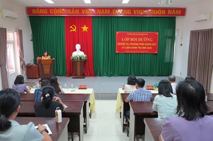 Tin hoạt độngKhánh Hòa: 120 đại biểu được bồi dưỡng nghiệp vụ, phương pháp giảng dạy lý luận chính trịTừ ngày 26 đến ngày 28/8, Trường Chính trị tỉnh Khánh Hòa phối hợp với Ban Tuyên giáo Tỉnh ủy tổ chức Lớp bồi dưỡng nghiệp vụ, phương pháp giảng dạy lý luận chính trị cho 120 đại biểu là giảng viên của Trường Chính trị tỉnh, giảng viên các trung tâm chính trị cấp huyện, các trường đại học, cao đẳng trên địa bàn tỉnh và cán bộ làm công tác tuyên giáo của các đảng ủy trực thuộc Tỉnh ủy.