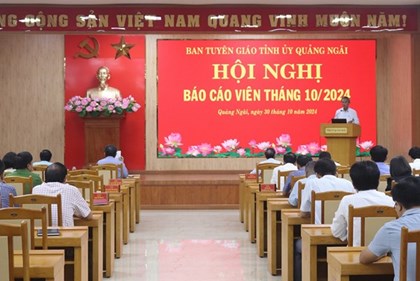 Tin hoạt độngQuảng Ngãi: Tập trung tuyên truyền các nghị quyết, chỉ thị, kết luận của ĐảngThời gian tới, đội ngũ Báo cáo viên tỉnh Quảng Ngãi cần tập trung tuyên truyền các nghị quyết, chỉ thị, kết luận của Đảng mới ban hành, trọng tâm là Nghị quyết Hội nghị lần thứ 10 Ban Chấp hành Trung ương Đảng khóa XIII; những chủ đề lớn, trọng tâm từ nay đến Đại hội đại biểu toàn quốc lần thứ XIV của Đảng…