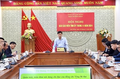 Tin hoạt độngLâm Đồng: Đẩy mạnh tuyên truyền nội dung định hướng của đồng chí Tổng Bí thư Tô Lâm về kỷ nguyên mới, kỷ nguyên vươn mình của dân tộcLãnh đạo Ban Tuyên giáo Tỉnh ủy Lâm Đồng đề nghị Báo cáo viên đẩy mạnh tuyên truyền, quán triệt nội dung định hướng của đồng chí Tổng Bí thư Tô Lâm về kỷ nguyên mới, kỷ nguyên vươn mình của dân tộc; tuyên truyền những thành tựu nổi bật trên các lĩnh vực của đơn vị, địa phương và đất nước…