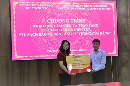 Sáng ngày 22/4, Ban Tuyên giáo Tỉnh ủy Thừa Thiên Huế và Nhà xuất bản Chính trị quốc gia Sự thật tổ chức chương trình trao đổi, làm việc và trao tặng “Tủ sách Chi bộ điện tử” và “Tủ sách bảo vệ nền tảng tư tưởng của Đảng”. -
