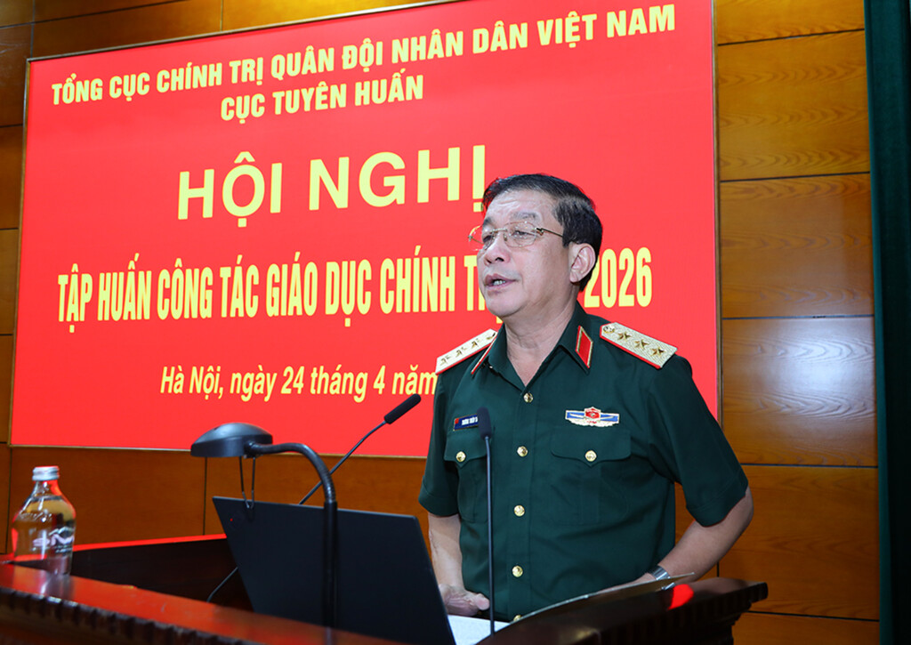 Ngày 24/4, Cục Tuyên huấn, Tổng cục Chính trị QĐND Việt Nam tổ chức Hội nghị tập huấn công tác giáo dục chính trị năm 2026. Hội nghị được tổ chức theo hình thức trực tiếp kết hợp trực tuyến với 166 điểm cầu trong toàn quân, với sự tham dự của lãnh đạo cơ quan chính trị, chỉ huy phòng, ban tuyên huấn, cán bộ tuyên huấn, cán bộ công nghệ thông tin của các cơ quan, đơn vị.