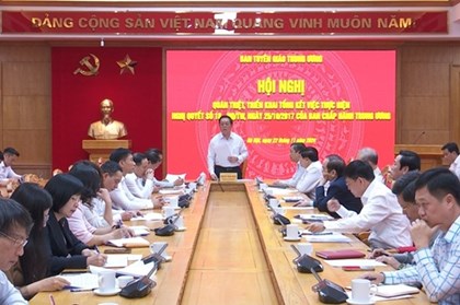 Đồng chí Trưởng Ban Tuyên giáo Trung ương lưu ý, việc tuyên truyền tổng kết Nghị quyết số 18-NQ/TW cần gắn kết chặt chẽ với tuyên truyền 7 định hướng chiến lược đưa đất nước bước vào kỷ nguyên mới, kỷ nguyên vươn mình của dân tộc Việt Nam. Đồng thời, chú trọng công tác thông tin đối ngoại về chủ trương, quyết tâm của Đảng, Nhà nước Việt Nam trong việc đổi mới, sắp xếp, tinh gọn tổ chức bộ máy của hệ thống chính trị và triển khai kế hoạch phát triển kinh tế - xã hội; qua đó quảng bá hình ảnh một quốc gia đổi mới, năng động, góp phần nâng cao vị thế, uy tín của đất nước trên trường quốc tế; củng cố niềm tin của cộng đồng quốc tế, các tổ chức, nhà đầu tư nước ngoài về môi trường chính trị - kinh tế ổn định và minh bạch ở Việt Nam.