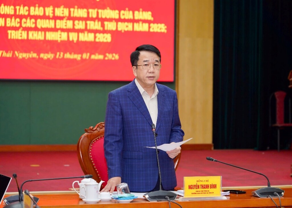 Ngày 13/01, Ban Chỉ đạo 35 Tỉnh ủy Thái Nguyên tổ chức Hội nghị tổng kết công tác bảo vệ nền tảng tư tưởng của Đảng, đấu tranh phản bác các quan điểm sai trái, thù địch năm 2025; triển khai nhiệm vụ năm 2026.