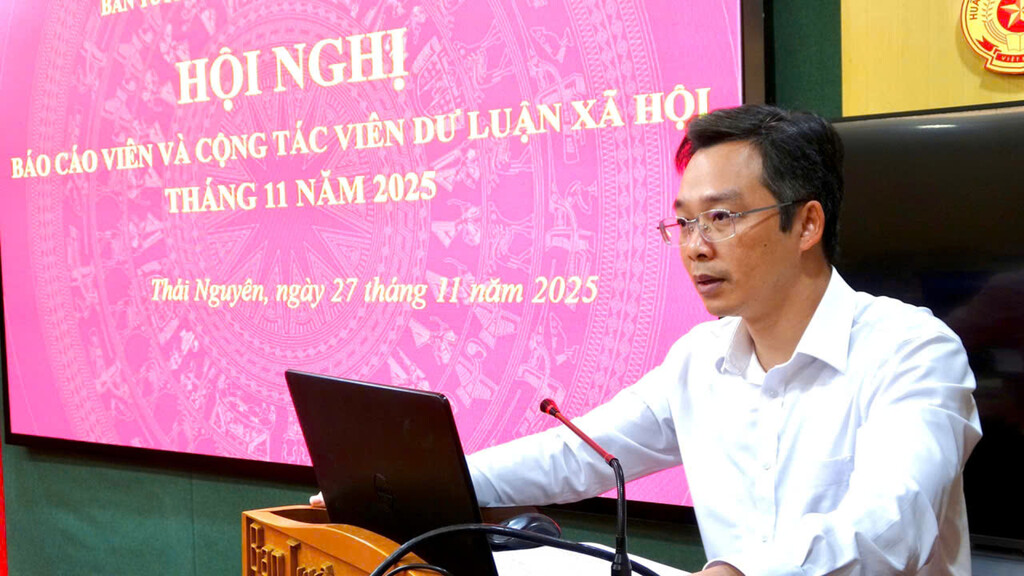 Ngày 27/11, Ban Tuyên giáo và Dân vận Tỉnh ủy Thái Nguyên tổ chức Hội nghị Báo cáo viên và cộng tác viên dư luận xã hội tháng 11/2025 theo hình thức trực tiếp kết hợp trực tuyến.