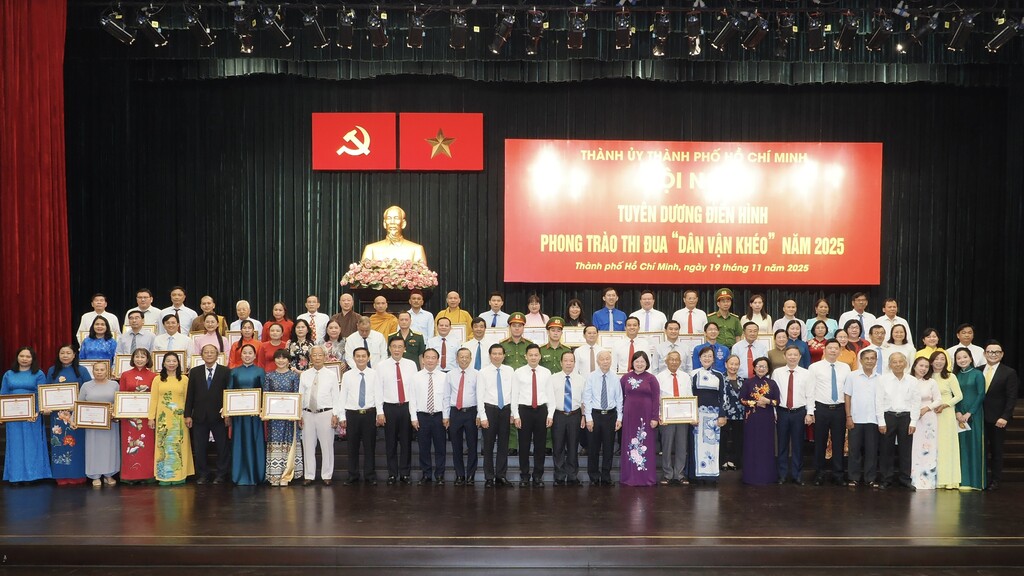 Tại Hội nghị, các đồng chí lãnh đạo Thành phố Hồ Chí Minh tuyên dương, tặng Bằng khen của UBND Thành phố cho 159 tập thể và 62 cá nhân điển hình tiên tiến trong Phong trào thi đua “Dân vận khéo” năm 2025. Đây là những tập thể, cá nhân gương mẫu chấp hành pháp luật, sâu sát, trực tiếp bám cơ sở, linh hoạt trong công tác tuyên truyền, vận động nhân dân, góp phần tạo chuyển biến tích cực ở địa phương.