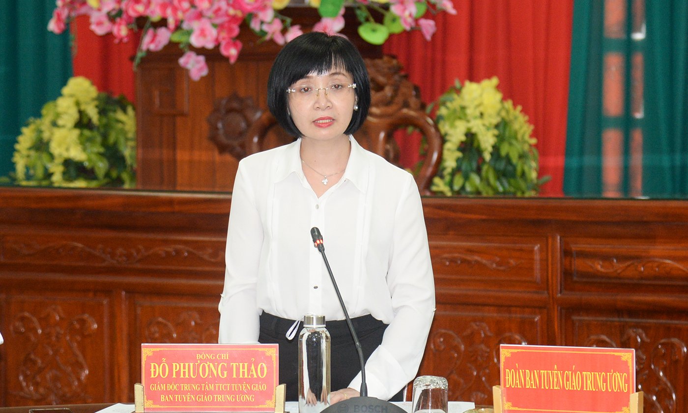 Phát biểu tại buổi làm việc, đồng chí Châu Thị Mỹ Phương, Ủy viên Ban Thường vụ Tỉnh ủy, Trưởng ban Tuyên giáo Tỉnh ủy khẳng định: Qua triển khai, quán triệt thực hiện Chỉ thị 17-CT/TW của Ban Bí thư và các văn bản chỉ đạo của Trung ương và của tỉnh, các cấp ủy, tổ chức đảng, cán bộ, đảng viên nhận thức được vị trí, vai trò, tầm quan trọng của công tác tuyên truyền miệng và sự cần thiết phải tiếp tục đổi mới và nâng cao chất lượng, hiệu quả công tác tuyên truyền miệng trong tình hình mới; xem công tác tuyên truyền miệng là nhiệm vụ quan trọng, thường xuyên của cả hệ thống chính trị.