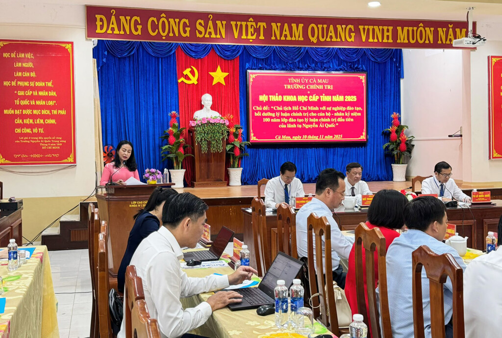 Ngày 10/11, Trường Chính trị tỉnh Cà Mau tổ chức Hội thảo khoa học cấp tỉnh năm 2025 “Chủ tịch Hồ Chí Minh với sự nghiệp đào tạo, bồi dưỡng lý luận chính trị cho cán bộ, nhân kỷ niệm 100 năm Lớp đào tạo lý luận chính trị đầu tiên của lãnh tụ Nguyễn Ái Quốc”, với sự tham dự của nhiều nhà khoa học, nhà quản lý, giảng viên và cán bộ nghiên cứu lý luận chính trị trong và ngoài tỉnh, tạo diễn đàn trao đổi chuyên sâu, thực chất và có ý nghĩa.