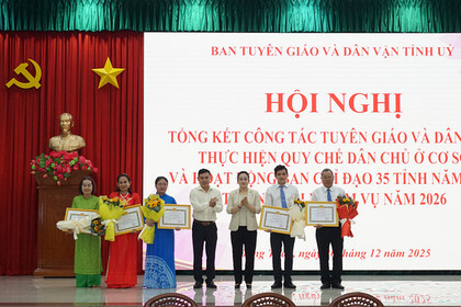 Ngày 22/12, Tỉnh ủy Quảng Ninh tổ chức Hội nghị tổng kết thực hiện dân chủ ở cơ sở và phong trào thi đua “dân vận khéo” năm 2025, triển khai nhiệm vụ năm 2026. -