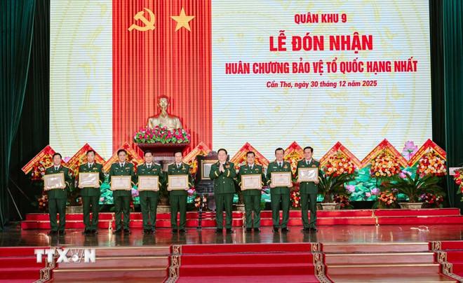 Sáng 30/12, tại thành phố Cần Thơ, Đảng ủy, Bộ Tư lệnh Quân khu 9 tổ chức Lễ đón nhận Huân chương Bảo vệ Tổ quốc hạng Nhất vì đã có thành tích xuất sắc trong công tác huấn luyện, sẵn sàng chiến đấu, xây dựng lực lượng Quân đội nhân dân, củng cố quốc phòng, góp phần vào sự nghiệp xây dựng chủ nghĩa xã hội và bảo vệ Tổ quốc.